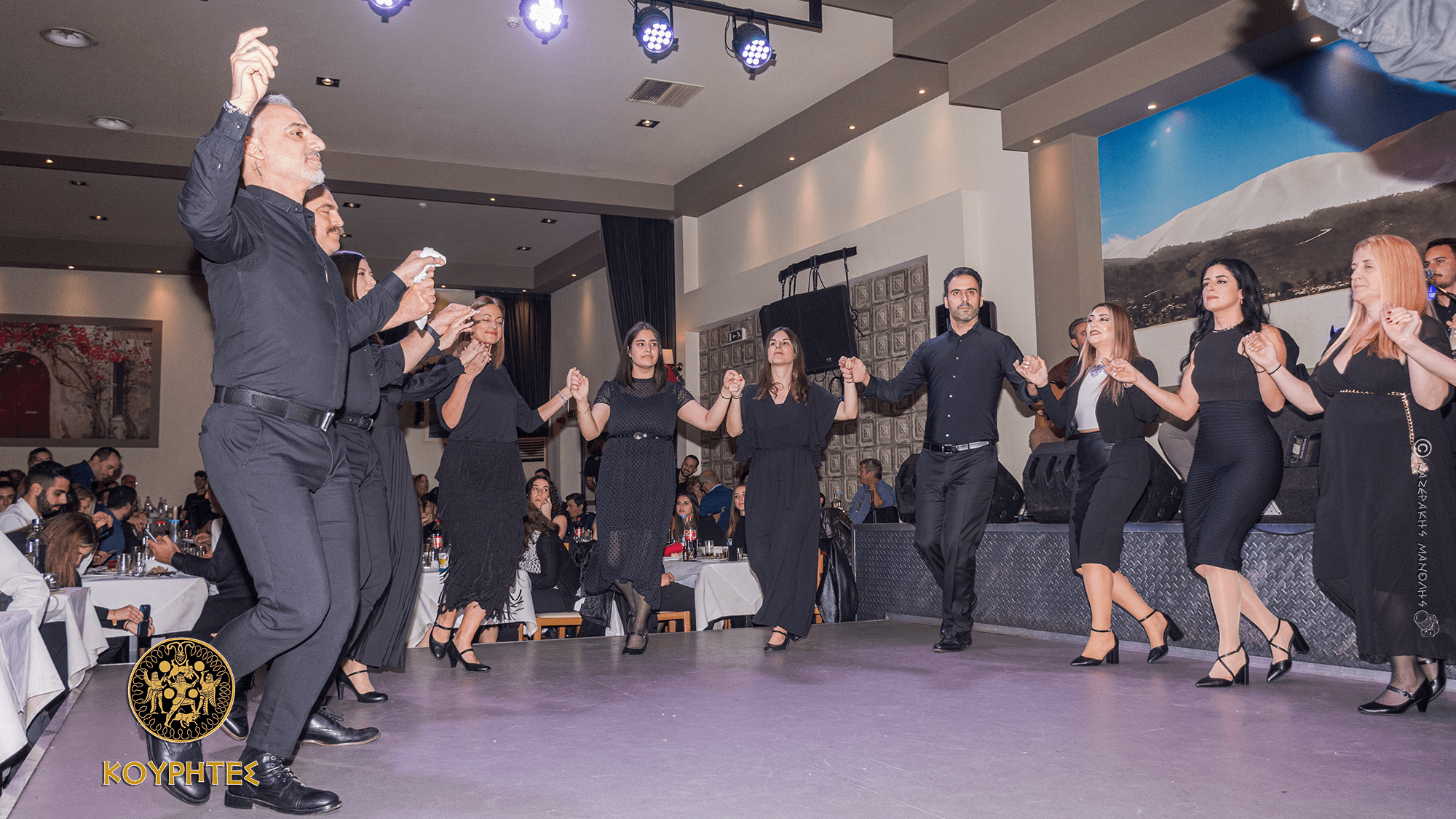 Η έναρξη της βραδιάς πραγματοποιήθηκε με τα παιδικά τμήματα, τα οποία χόρεψαν Σιγανό και Συρτό. Ακολούθησε το αρχάριο τμήμα ενηλικών με τον Ξενομπασάρη και τα τμήματα του μεσαίου επιπέδου, όπου χόρεψαν Καστρινό, Συρτό και Εθιανό. Στη συνέχεια, το δεύτερο αρχάριο τμήμα ενηλίκων παρουσίασε το Σιγανό και ακολούθησε το τμήμα παραδοσιακών χορών που χόρεψε Συρτό Νάξου και Βλάχα Νάξου. Έπειτα, το εφηβικό τμήμα χόρεψε Καστρινό και Πεντοζάλι και το τμήμα του προχωρημένου επιπέδου παρουσίασε τον Συρτό και το Μαλεβιζιώτη. Τέλος, η χορευτική ομάδα του Λαογραφικού Ομίλου «ΚΟΥΡΗΤΕΣ» χόρεψε Συρτό, Μαλεβιζιώτη, Σιγανό και Παντοζάλι, φορώντας κρητικές παραδοσιακές φορεσιές από όλη την Κρήτη.